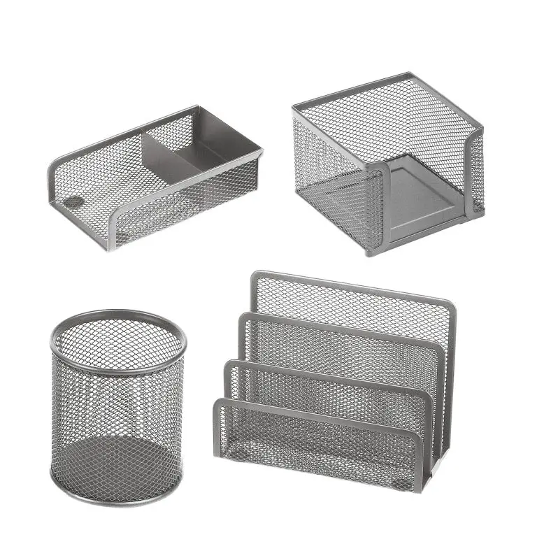 Set scrivania – 4 accessori – rete metallica – argento – Lebez