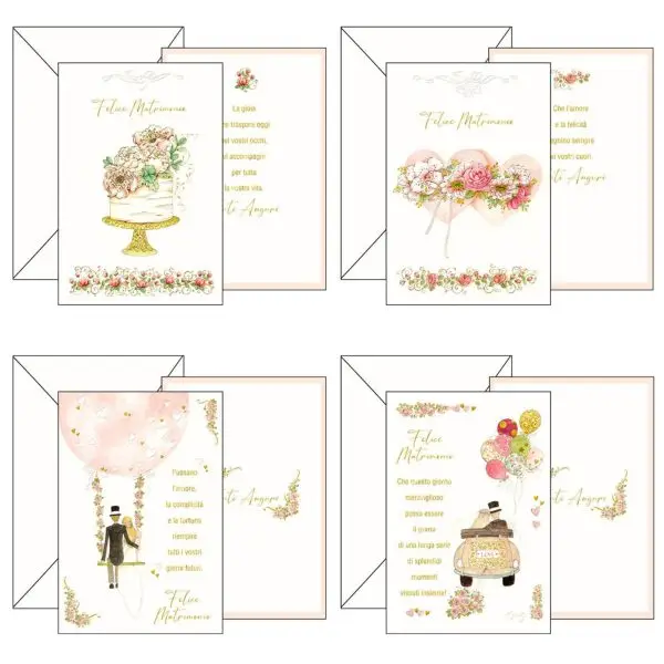 Biglietto auguri Matrimonio – 11,7 x 17 cm – con rifiniture oro – Kartos