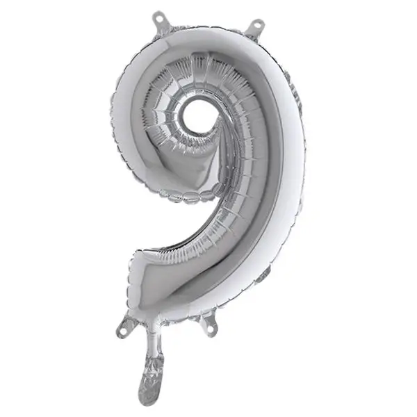 Palloncino – numero 9 – H 36 cm – mylar – argento – Big party