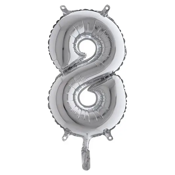 Palloncino – numero 8 – H 36 cm – mylar – argento – Big party
