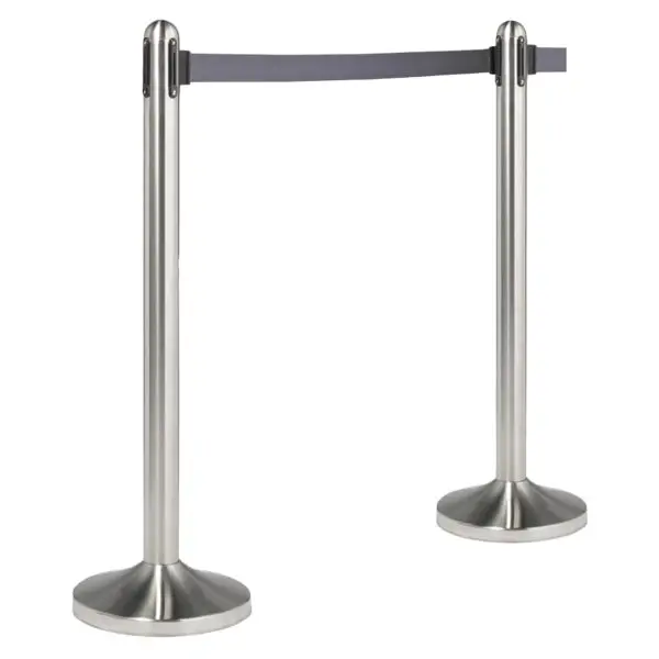 Colonnina segnapercorso cromata – altezza 100 cm – nastro retrattile grigio da 210 cm – Securit
