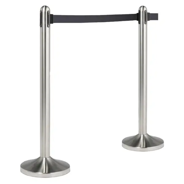 Colonnina segnapercorso cromata – altezza 100 cm – nastro retrattile nero da 210 cm – Securit