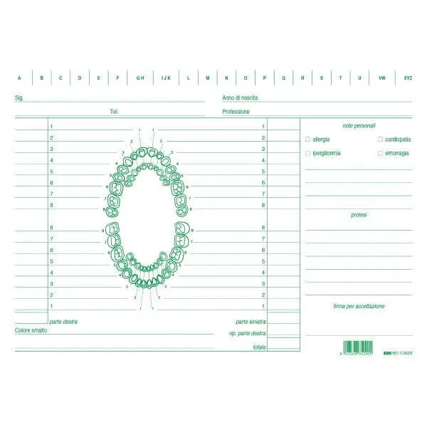 Schede in cartoncino per dentisti – 17 x 24 cm – verde – Edipro – conf. 100 pezzi