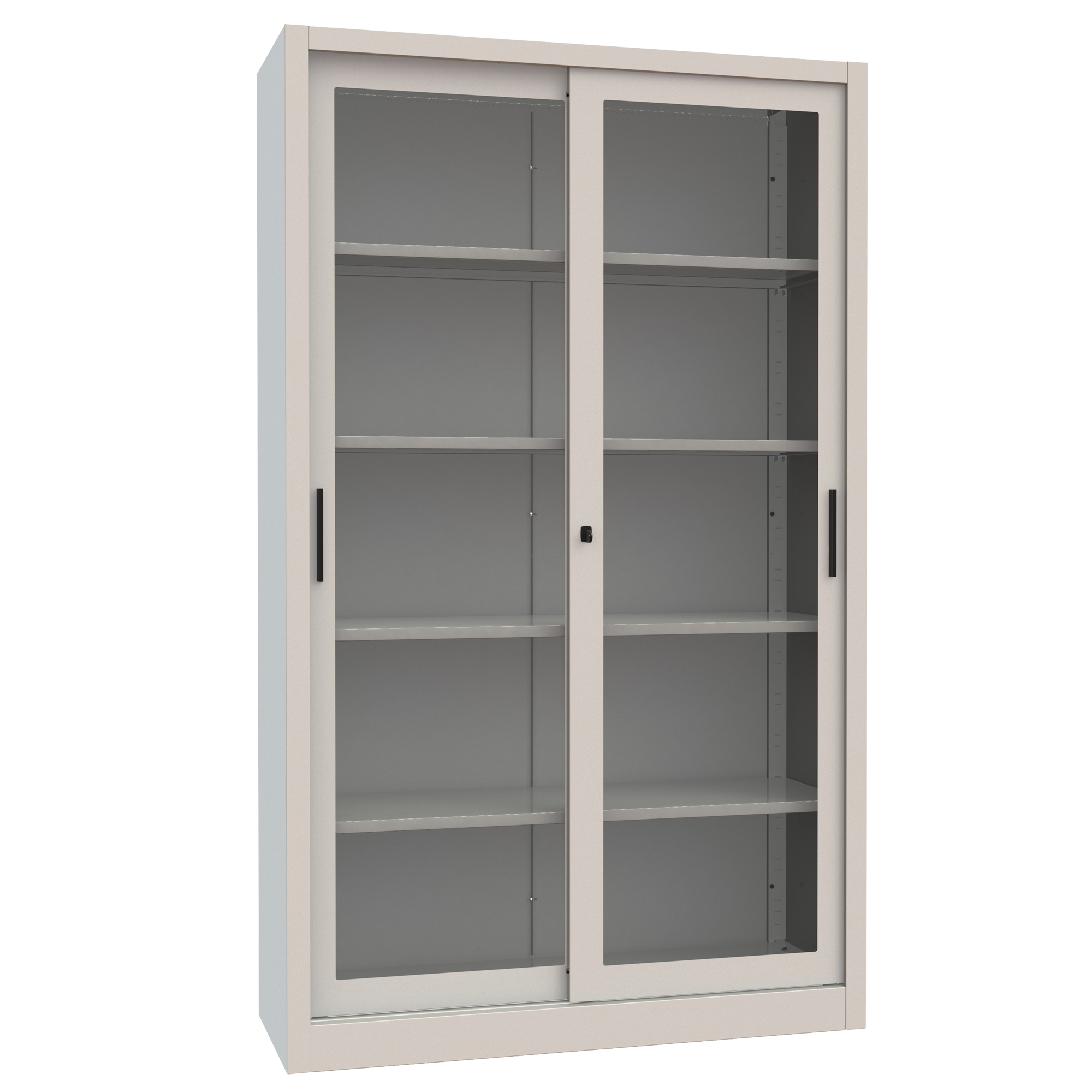 Serratura a pulsante con doppia chiave antitrauma in dotazione. Chiusura: leva a una via. Allestimento interno N ° 4 Ripiani mobili su cremagliera, completi di reggimensole in acciaio zincato con predisposizione per alloggiamento cartelle sospese.