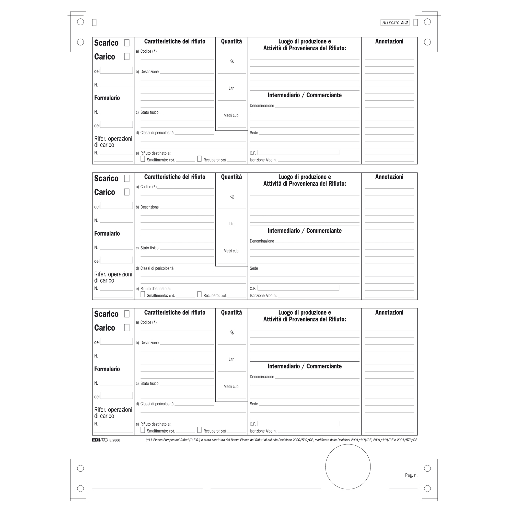 Modulo continuo carico/scarico rifiuti detentori (Mod. A) – 12″x 24 – 250 fogli – Edipro