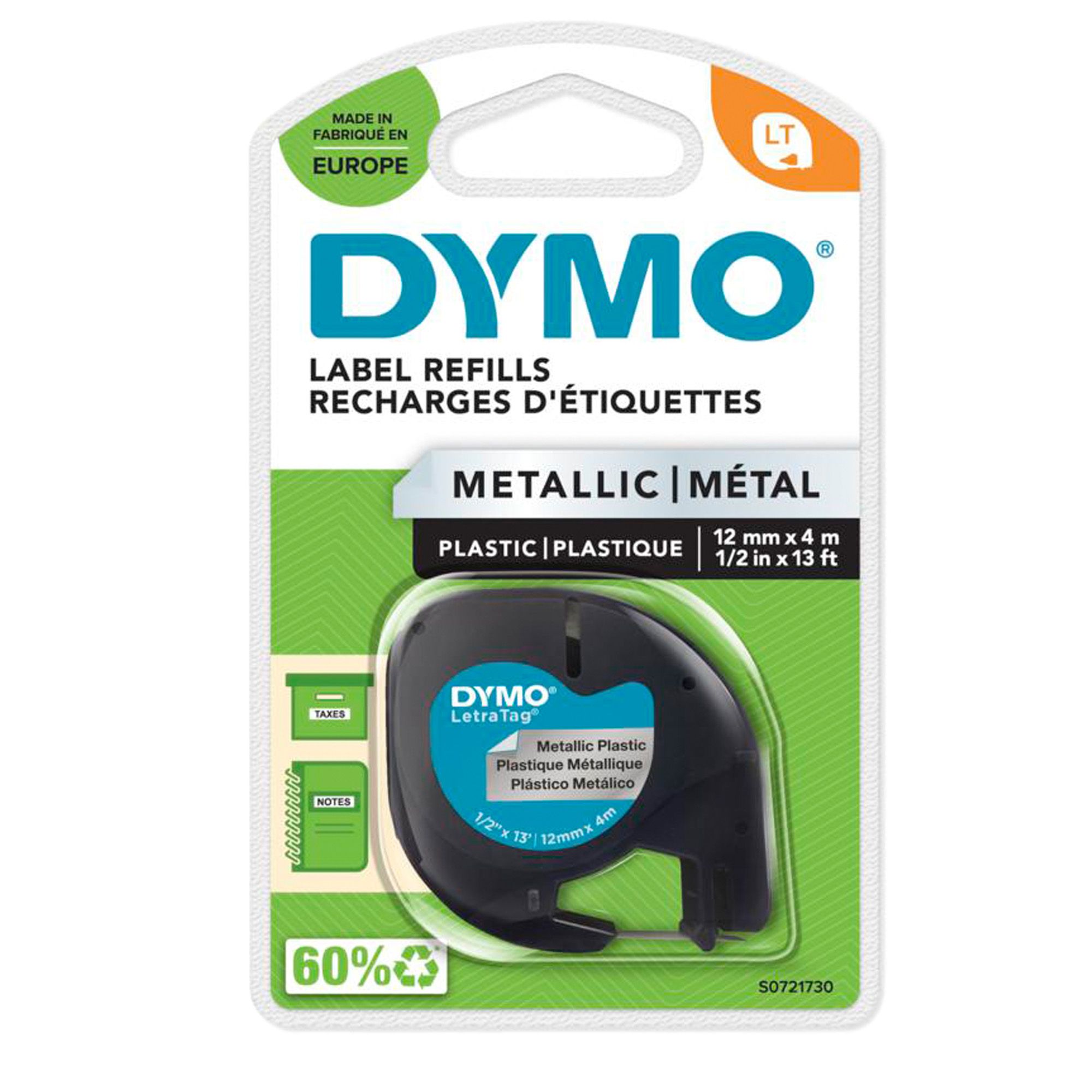 Nastro Letratag 912080 – 12 mm x 4 mt – metallo – argento – Dymo