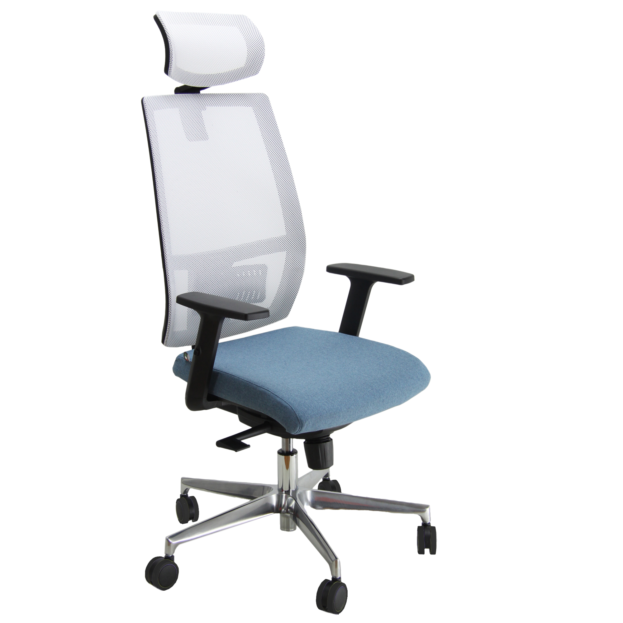 Poltrona semidirezionale Melania MAALPG – con braccioli regolabili e poggiatesta – celeste/bianco – Unisit