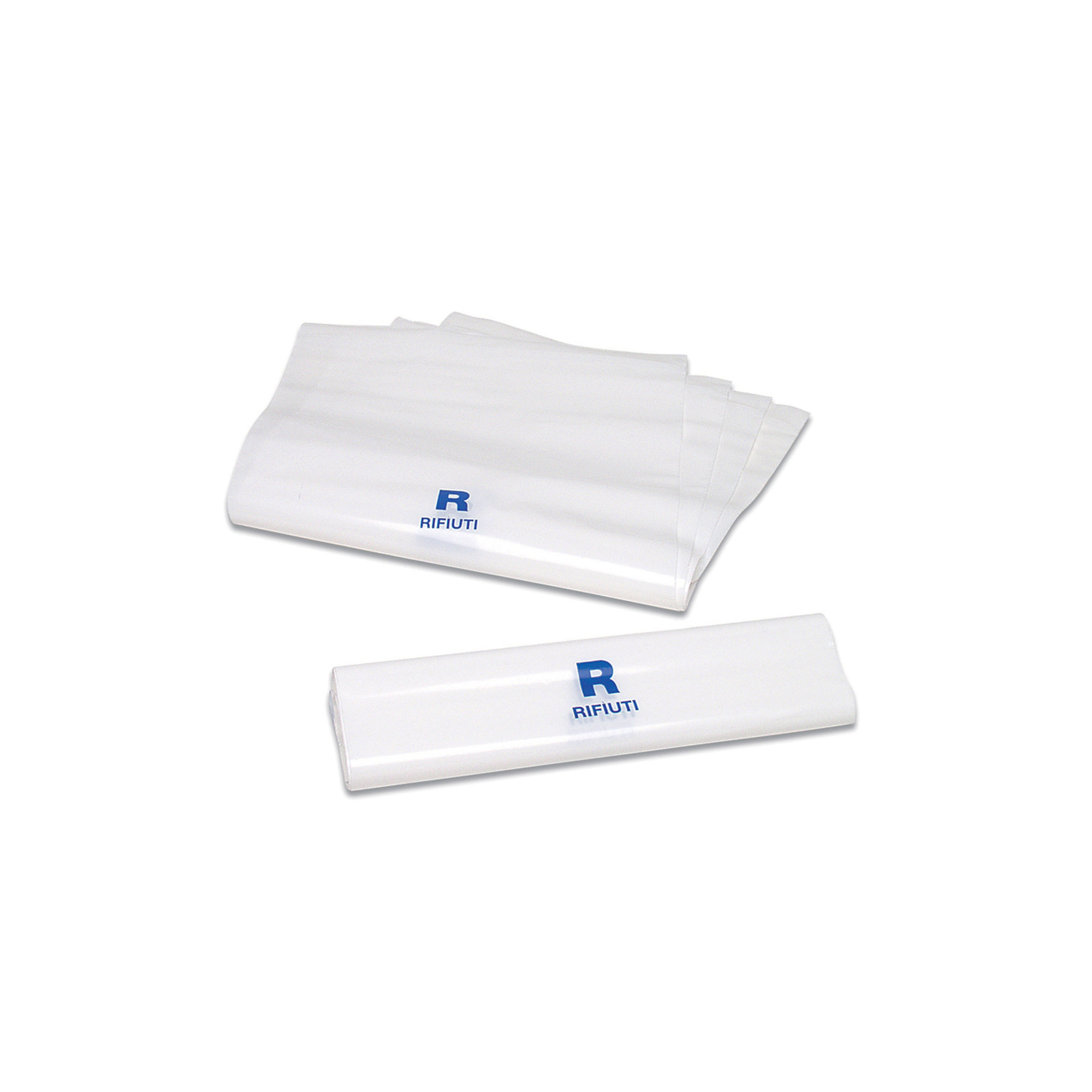 sacchetto per rifiuti sanitari con chiusura minigrip e stampa “R Rifiuti”. Formato 18x25cm.