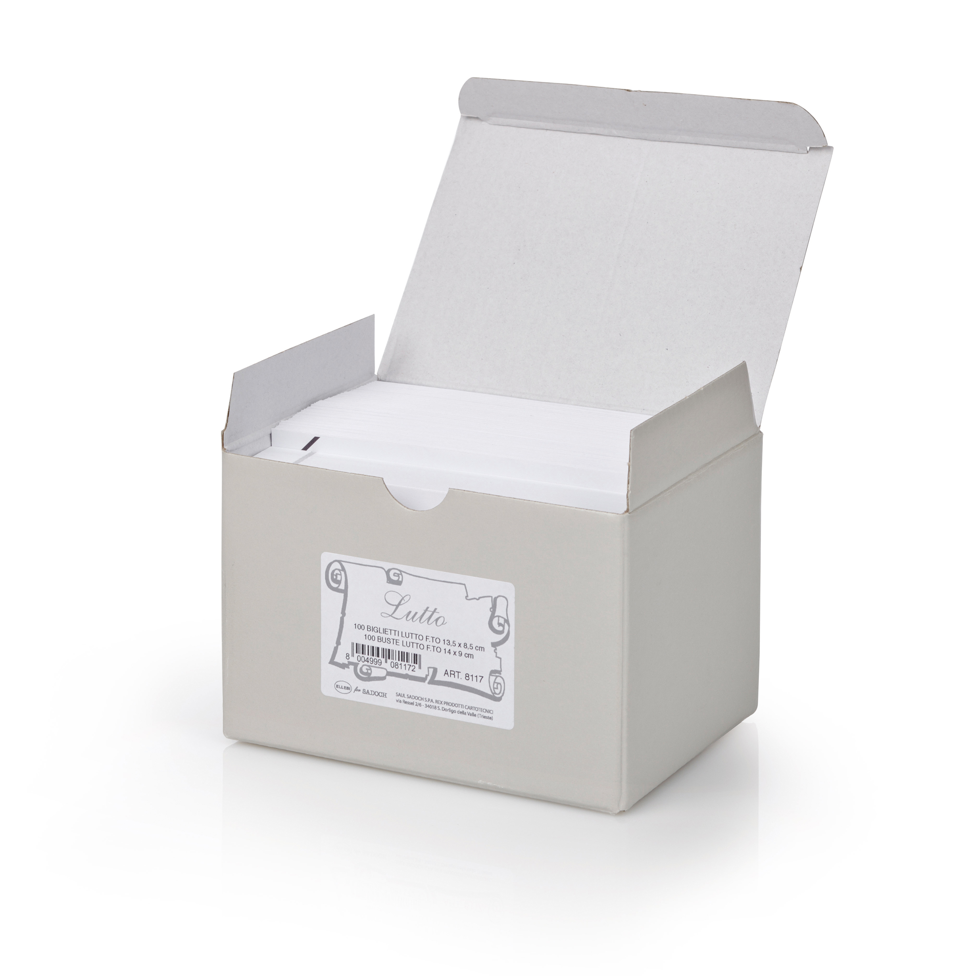 Scatola 100 biglietti + 100 buste – Lutto – bianco – 9 x 14 cm – Rex Sadoch