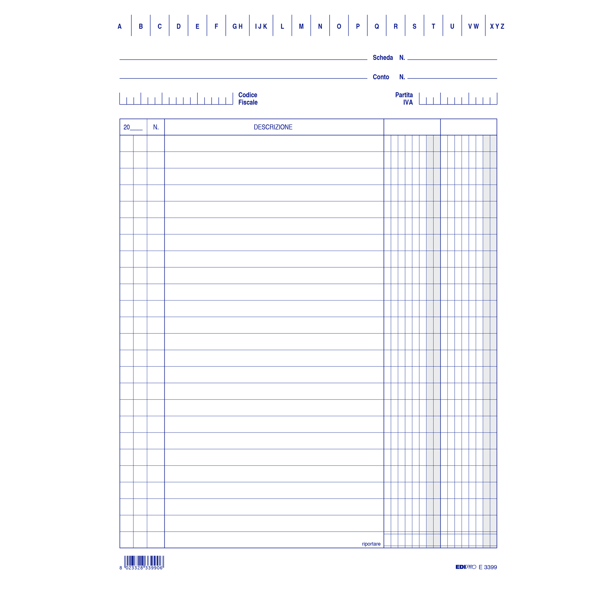 100 schede in cartoncino da 170gr. Formato 24x17cm verticale. 2 colonne.