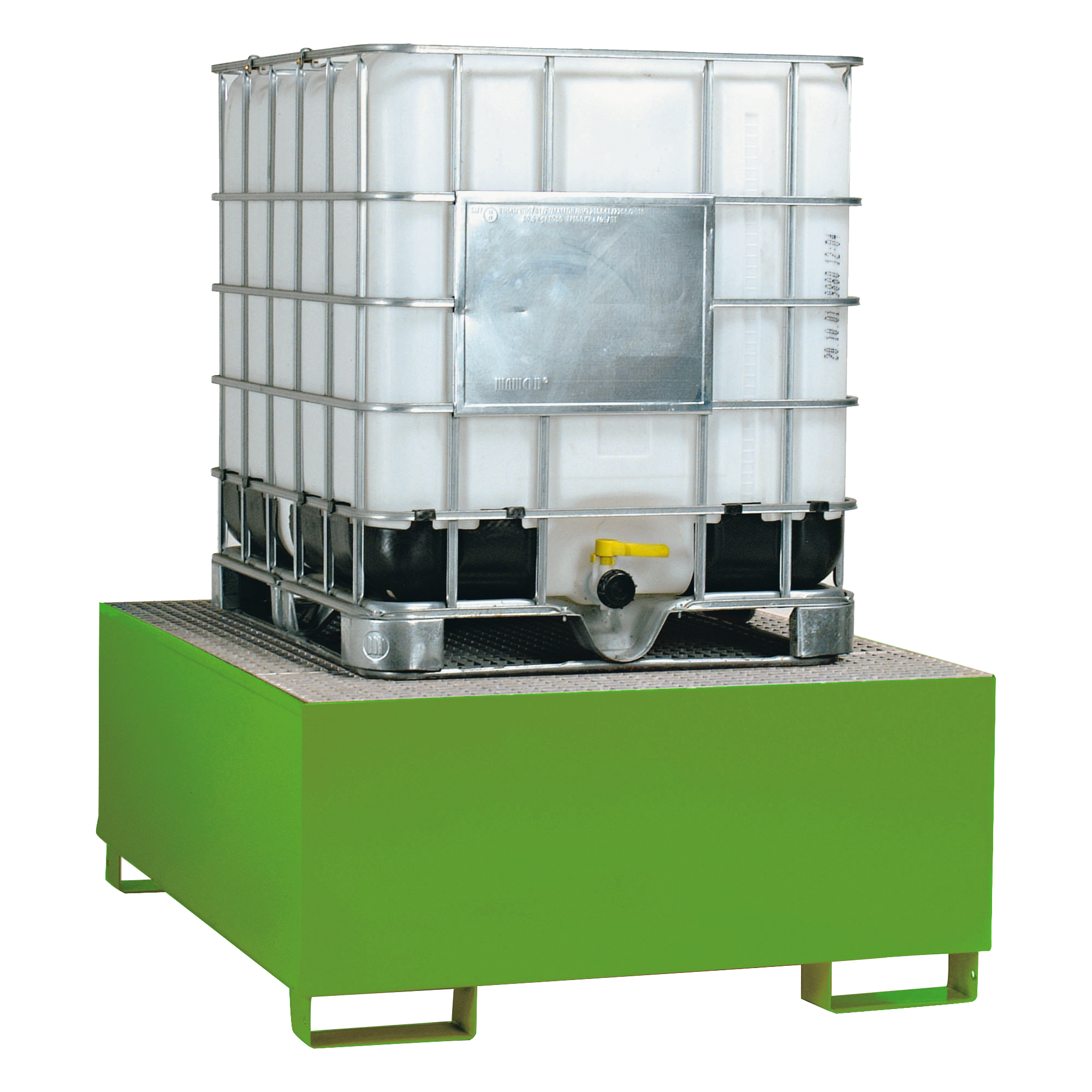 Vasca realizzata in acciaio al carbonio da 3 mm, piegata mediante sistema fibrante con rinforzi strutturali. Saldature a controllo elettronico della cordonatura e della miscela gassosa per garantire una perfetta tenuta stagna. Dimensionamenti, tolleranze, bordature, smussature, peso nominale e grado di finitura come da parametri UNI. Trattamento da esterno anticorrosione ottenuto con resine poliuretaniche antiolio e antiacido e verniciatura in poliestere (per esterni) di colore visibile e sicuro a norma ISO 3864 e norma CEE 77/576 – L 229 e successive modifiche. Grigliato in acciaio al carbonio zincato a caldo con maglie ad alta portata, posto su perimetro di profilo ad “L” saldata e omega centrale di rinforzo. Volume di raccolta a norma di legge.