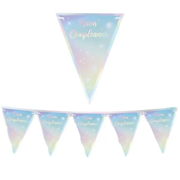 Festone bandiere Soft Rainbow – Buon Compleanno – 3 metri – Big Party