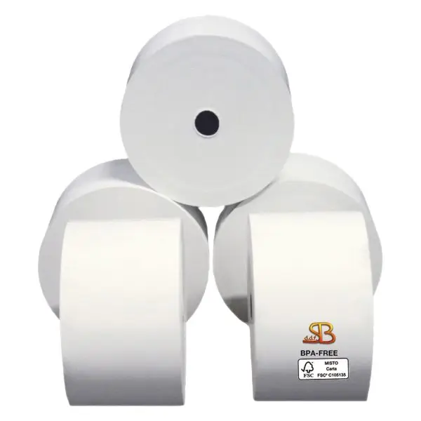 Rotolo per distributore self service – 57 mm x 100 m – 55 gr – diametro esterno 90 mm – anima 12 mm – carta termica BPA free – Sabacart