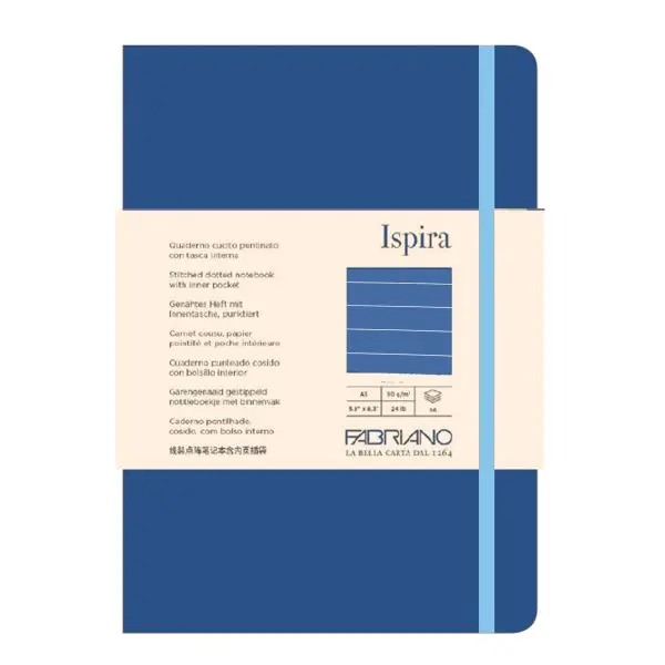 Taccuino Ispira – con elastico – copertina flessibile – A5 – 96 fogli – puntinato – blu royal – Fabriano