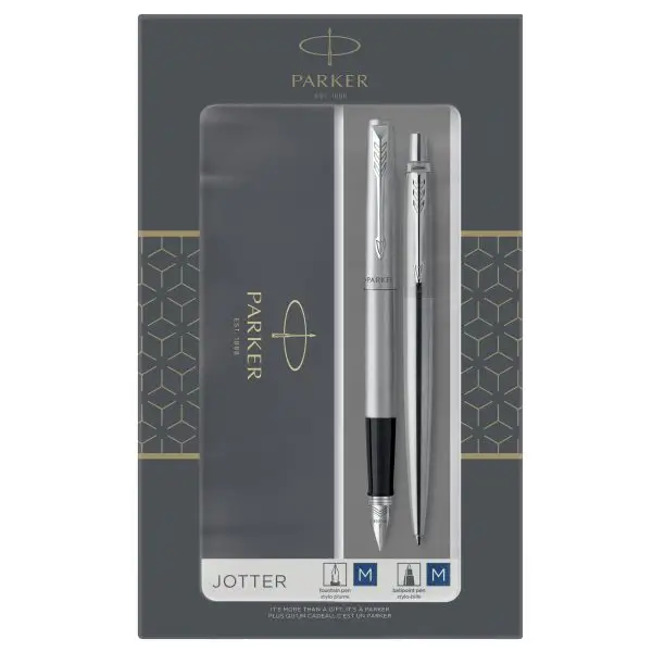 Gift Set DUO – Jotter stainless steel CT sfera + stilografica – punta media – Parker